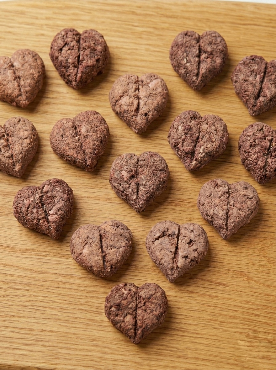 Freeze Dried Beef Hearts, shaped as a Heart. Come in 6oz or 3oz resealable bags.
